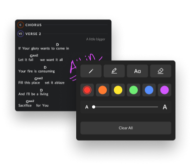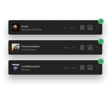 리허설 번들에는 팀이 준비된 모습을 보여줄 수 있는 리소스와 도구가 포함되어 있습니다. 번들에 포함된 ChartBuilder 앱은 뮤지션과 보컬을 위한 놀라운 도구로, 다음과 같은 이점을 제공합니다. 자신감 있게 공연할 수 있습니다. 또한, 이 번들에는 플래닝센터 통합 액세스 권한과 팀에 필요한 코드와 가사를 제공하는 훌륭한 대안이 될 수 있는 PDF 코드 차트 다운로드도 포함되어 있으므로 모두 같은 페이지에서 작업할 수 있습니다.