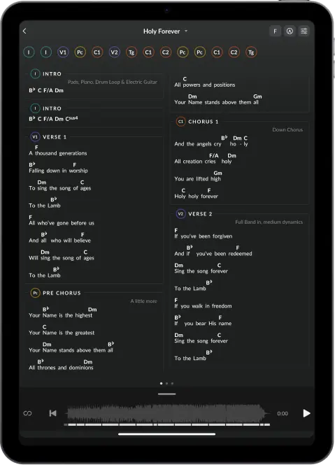 예배 팀을 위한 역동적이고 사용자 지정 가능한 코드 차트 앱을 다운로드하세요. iOS 또는 Android에서 사용 가능합니다.
